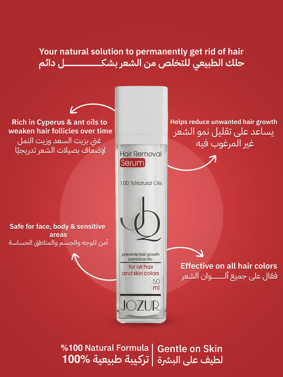 Hair Removal Serum is a potent natural treatment formulated to help visibly reduce unwanted body hair and slow future regrowth. The concentrated oil blend penetrates deep into hair follicles to progressively weaken hair from the root while maintaining skin softness and hydration. With consistent use, hair appears finer, lighter, and significantly less noticeable.